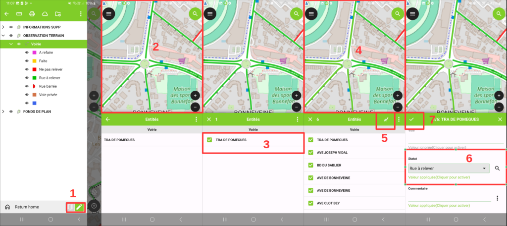 – vérifier attentivement les modifications avant enregistrement (QField ne disposant pas d’annulation ou de retour en arrière ! )