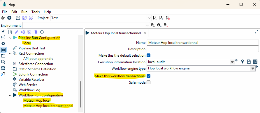 Pour mettre en place ce mode transactionnel, il suffit de se rendre dans « metadata » puis « Pipeline Run Configuration » ou « Workflow Run Configuration » et de paramétrer vos moteurs d’exécution locaux en cochant « Make this pipeline transactionnal » ou « Make this workflow transactionnal »